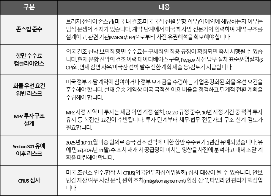 • 브리지 전략 계약 구조 설계 및 존스법 적합성 검토